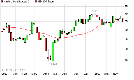 Mit dem Anstieg auf 67,04 EUR hat die Hasbro-Aktie am 20.11.2025 die 100-Tage-Linie nach oben gekreuzt.
