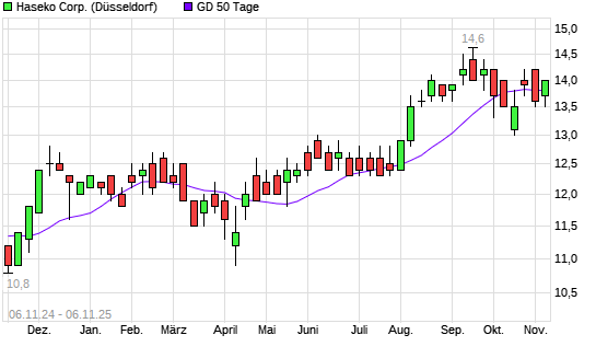 Mit dem Anstieg auf 14,00 EUR hat die Haseko-Aktie am 05.11.2025 die 50-Tage-Linie nach oben gekreuzt.
