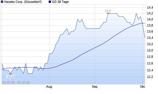 Mit dem Rücksetzer auf 14,00 EUR hat die Haseko-Aktie am 01.10.2025 die 38-Tage-Linie nach unten gekreuzt.