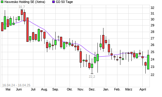 Mit dem Anstieg auf 24,40 EUR hat die Hawesko Holding-Aktie am 15.04.2025 die 50-Tage-Linie nach oben gekreuzt.