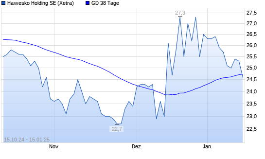 Mit dem Rücksetzer auf 24,70 EUR hat die Hawesko Holding-Aktie am 14.01.2025 die 38-Tage-Linie nach unten gekreuzt.