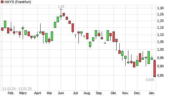 Mit dem Rücksetzer auf 0,85 EUR hat die Hays-Aktie (ISIN GB0004161021) am 10.01.2025 ein neues 10-Jahres-Tief erreicht und damit den Kurs vom 22.11.2024 eingestellt.