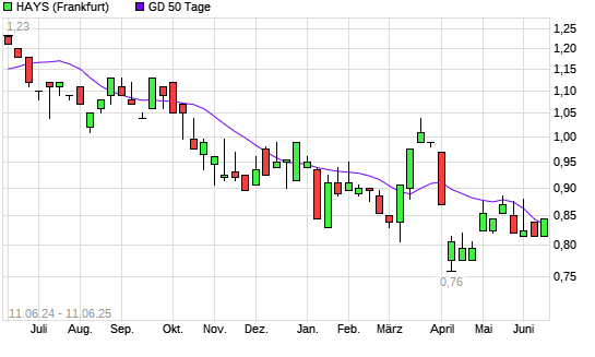 Mit dem Anstieg auf 0,83 EUR hat die Hays-Aktie am 10.06.2025 die 50-Tage-Linie nach oben gekreuzt.