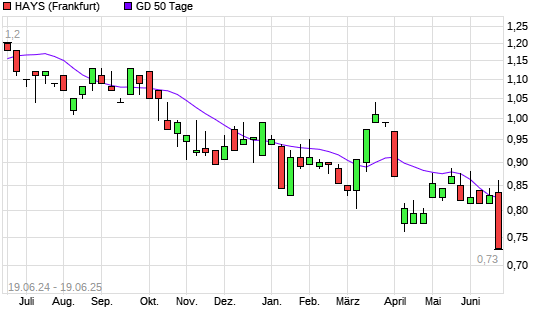 Mit dem Anstieg auf 0,86 EUR hat die Hays-Aktie am 18.06.2025 die 50-Tage-Linie nach oben gekreuzt.
