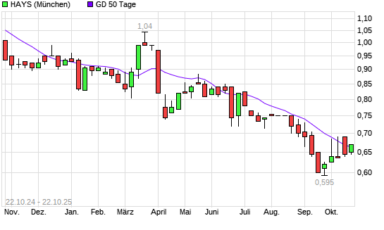 Mit dem Anstieg auf 0,70 EUR hat die Hays-Aktie am 21.10.2025 die 50-Tage-Linie nach oben gekreuzt.