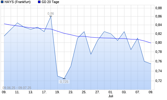 Mit dem Rücksetzer auf 0,76 EUR hat die Hays-Aktie am 08.07.2025 die 20-Tage-Linie nach unten gekreuzt.