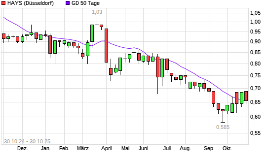 Mit dem Rücksetzer auf 0,66 EUR hat die Hays-Aktie am 29.10.2025 die 50-Tage-Linie nach unten gekreuzt.Die Hays-Aktie befindet sich seit dem 24.03.2025 im langfristigen Abwärtstrend und ...weiterlesen
