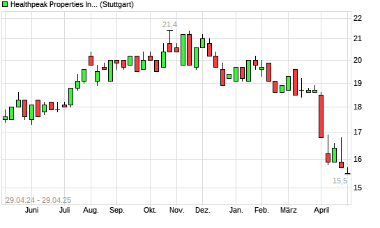 Mit dem Rücksetzer auf 15,50 EUR hat die Healthpeak Properties-Aktie (ISIN US42250P1030) am 28.04.2025 ein neues 12-Monats-Tief erreicht und damit den Kurs vom 25.04.2025 eingestellt.