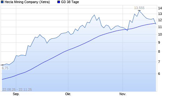 Mit dem Rücksetzer auf 11,26 EUR hat die Hecla Mining-Aktie am 21.11.2025 die 38-Tage-Linie nach unten gekreuzt.