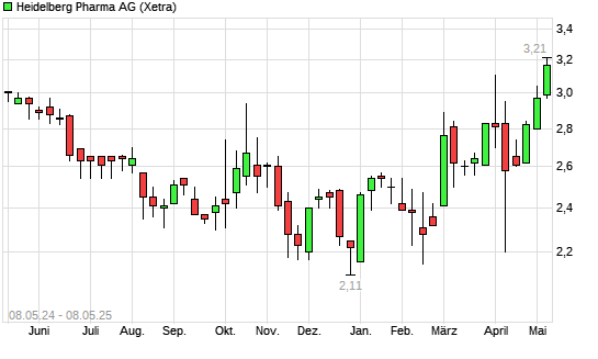 Mit dem Anstieg auf 3,11 EUR hat die Heidelberg Pharma-Aktie (ISIN DE000A11QVV0) am 07.05.2025 ein neues 12-Monats-Hoch erreicht und damit den Kurs vom 07.05.2024 eingestellt.