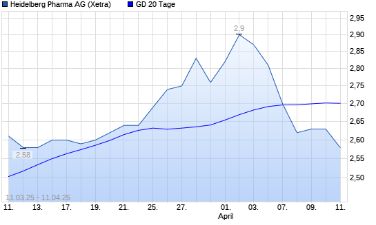 Mit dem Anstieg auf 2,62 EUR hat die Heidelberg Pharma-Aktie am 10.04.2025 die 20-Tage-Linie nach oben gekreuzt.