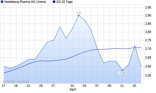 Mit dem Anstieg auf 2,63 EUR hat die Heidelberg Pharma-Aktie am 15.04.2025 die 20-Tage-Linie nach oben gekreuzt.