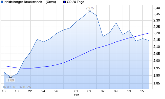 Mit dem Anstieg auf 2,19 EUR hat die Heidelberger Druckmaschinen-Aktie am 15.10.2025 die 20-Tage-Linie nach oben gekreuzt.