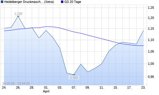 Mit dem Rücksetzer auf 1,08 EUR hat die Heidelberger Druckmaschinen-Aktie am 22.04.2025 die 20-Tage-Linie nach unten gekreuzt.