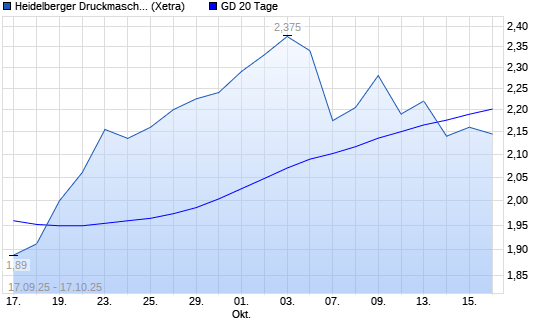 Mit dem Rücksetzer auf 2,14 EUR hat die Heidelberger Druckmaschinen-Aktie am 16.10.2025 die 20-Tage-Linie nach unten gekreuzt.