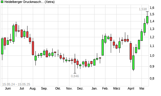 Mit dem Anstieg auf 1,52 EUR hat die Heidelberger Druckmaschinen-Aktie (ISIN DE0007314007) am 14.05.2025 ein neues 12-Monats-Hoch erreicht und damit den Kurs vom 13.05.2025 eingestellt.Die Heidelberger ...weiterlesen