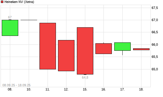 Mit dem Rücksetzer auf 65,64 EUR hat die Heineken-Aktie (ISIN NL0000009165) am 17.09.2025 ein neues 6-Monats-Tief erreicht und damit den Kurs vom 16.09.2025 eingestellt.
