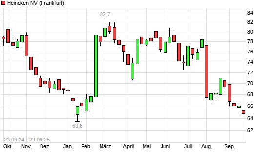 Mit dem Rücksetzer auf 65,22 EUR hat die Heineken-Aktie (ISIN NL0000009165) am 22.09.2025 ein neues 6-Monats-Tief erreicht und damit den Kurs vom 17.09.2025 eingestellt.
