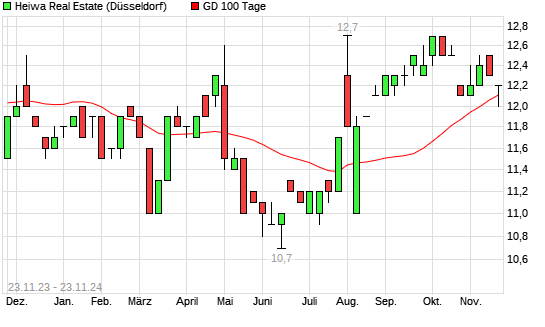 Mit dem Anstieg auf 24,80 EUR hat die Heiwa Real Estate-Aktie am 22.11.2024 die 100-Tage-Linie nach oben gekreuzt.