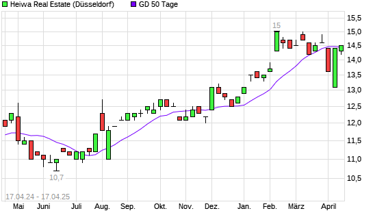 Mit dem Anstieg auf 29,20 EUR hat die Heiwa Real Estate-Aktie am 16.04.2025 die 50-Tage-Linie nach oben gekreuzt.