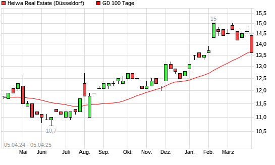 Mit dem Rücksetzer auf 27,40 EUR hat die Heiwa Real Estate-Aktie am 04.04.2025 die 100-Tage-Linie nach unten gekreuzt.