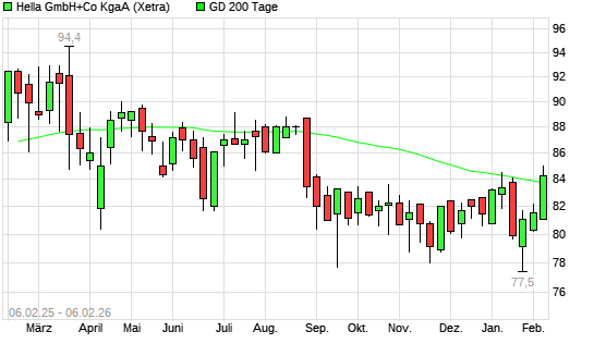 Mit dem Anstieg auf 84,40 EUR hat die Hella-Aktie am 05.02.2026 die 200-Tage-Linie nach oben gekreuzt.