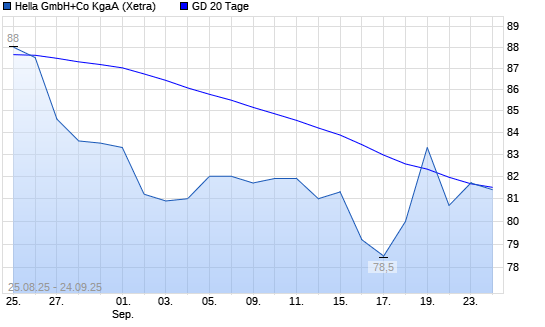 Mit dem Rücksetzer auf 80,50 EUR hat die Hella-Aktie am 23.09.2025 die 20-Tage-Linie nach unten gekreuzt.