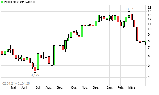 Mit dem Rücksetzer auf 7,68 EUR hat die HelloFresh-Aktie (ISIN DE000A161408) am 31.03.2025 ein neues 6-Monats-Tief erreicht und damit den Kurs vom 21.03.2025 eingestellt.