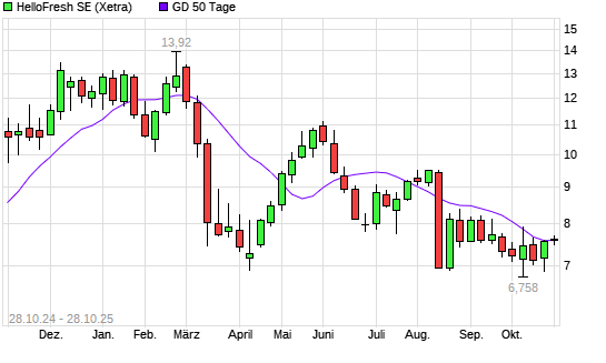 Mit dem Anstieg auf 7,61 EUR hat die HelloFresh-Aktie am 27.10.2025 die 50-Tage-Linie nach oben gekreuzt.
