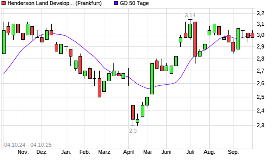Mit dem Rücksetzer auf 2,98 EUR hat die Henderson Land Development-Aktie am 03.10.2025 die 50-Tage-Linie nach unten gekreuzt.
