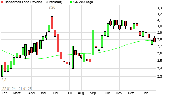 Mit dem Anstieg auf 2,84 EUR hat die Henderson Land Development-Aktie am 20.01.2025 die 200-Tage-Linie nach oben gekreuzt.Die Henderson Land Development-Aktie befand sich seit dem 13.01.2025 ...weiterlesen