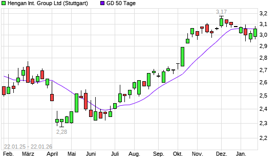 Mit dem Anstieg auf 3,06 EUR hat die Hengan International Group-Aktie am 21.01.2026 die 50-Tage-Linie nach oben gekreuzt.