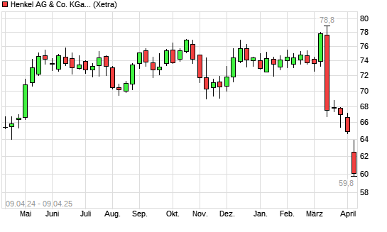Mit dem Rücksetzer auf 62,50 EUR hat die Henkel St-Aktie (ISIN DE0006048408) am 08.04.2025 ein neues 12-Monats-Tief erreicht und damit den Kurs vom 07.04.2025 eingestellt.