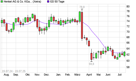 Mit dem Anstieg auf 62,85 EUR hat die Henkel St-Aktie am 14.07.2025 die 50-Tage-Linie nach oben gekreuzt.