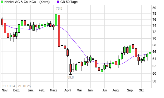 Mit dem Anstieg auf 65,30 EUR hat die Henkel St-Aktie am 20.10.2025 die 50-Tage-Linie nach oben gekreuzt.