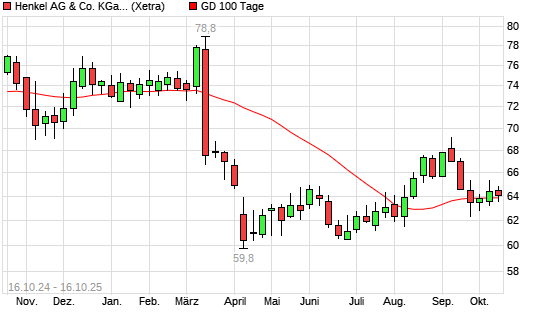 Mit dem Rücksetzer auf 63,55 EUR hat die Henkel St-Aktie am 15.10.2025 die 100-Tage-Linie nach unten gekreuzt.