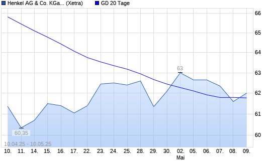 Mit dem Rücksetzer auf 61,95 EUR hat die Henkel St-Aktie am 09.05.2025 die 20-Tage-Linie nach unten gekreuzt.