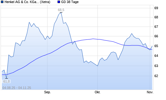 Mit dem Rücksetzer auf 64,55 EUR hat die Henkel St-Aktie am 03.11.2025 die 38-Tage-Linie nach unten gekreuzt.