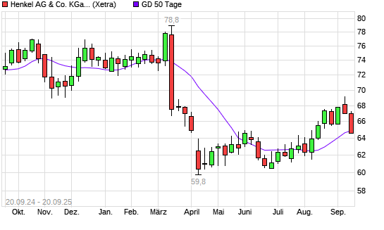 Mit dem Rücksetzer auf 64,65 EUR hat die Henkel St-Aktie am 19.09.2025 die 50-Tage-Linie nach unten gekreuzt.