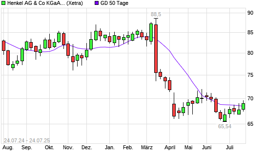 Mit dem Anstieg auf 69,32 EUR hat die Henkel Vz-Aktie am 23.07.2025 die 50-Tage-Linie nach oben gekreuzt.