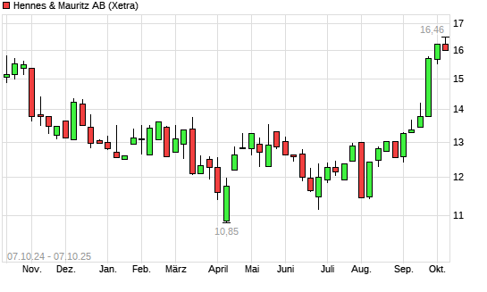Mit dem Anstieg auf 16,37 EUR hat die Hennes & Mauritz-Aktie (ISIN SE0000106270) am 06.10.2025 ein neues 12-Monats-Hoch erreicht und damit den Kurs vom 02.10.2025 eingestellt.