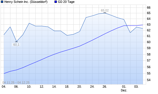 Mit dem Rücksetzer auf 61,36 EUR hat die Henry Schein-Aktie am 03.12.2025 die 20-Tage-Linie nach unten gekreuzt.