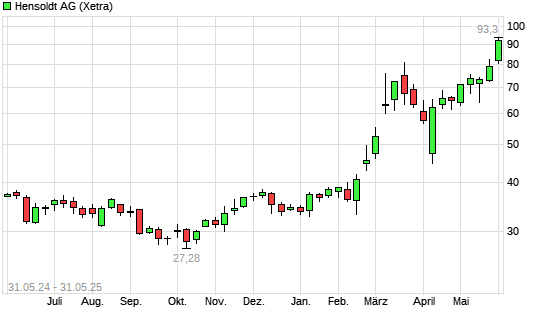 Mit dem Anstieg auf 91,90 EUR hat die Hensoldt-Aktie (ISIN DE000HAG0005) am 30.05.2025 ein neues All-Time-High erreicht und damit den Kurs vom 28.05.2025 eingestellt.