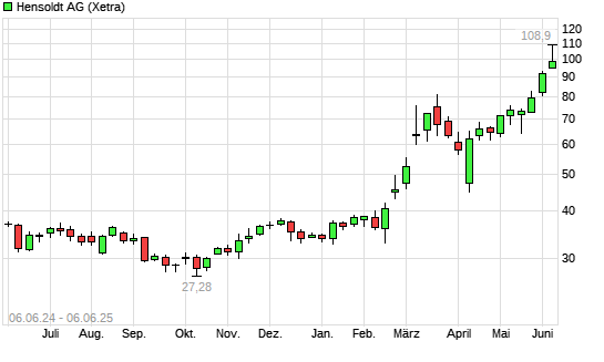 Mit dem Anstieg auf 106,80 EUR hat die Hensoldt-Aktie (ISIN DE000HAG0005) am 05.06.2025 ein neues All-Time-High erreicht und damit den Kurs vom 02.06.2025 eingestellt.