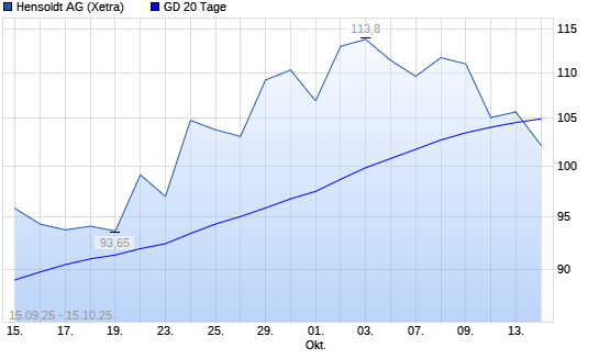 Mit dem Rücksetzer auf 102,10 EUR hat die Hensoldt-Aktie am 14.10.2025 die 20-Tage-Linie nach unten gekreuzt.