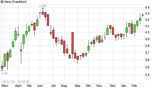 Mit dem Anstieg auf 4,28 EUR hat die Hera-Aktie (ISIN IT0001250932) am 17.02.2026 ein neues 6-Monats-Hoch erreicht und damit den Kurs vom 16.02.2026 eingestellt.