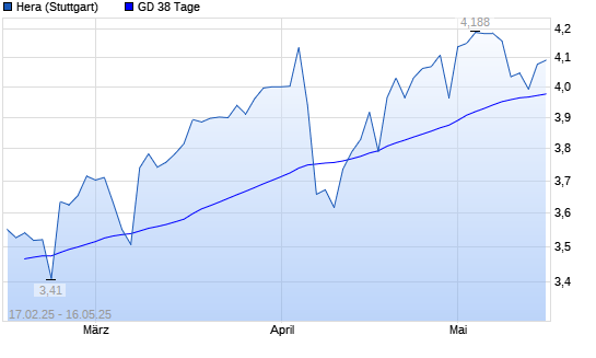Mit dem Anstieg auf 4,03 EUR hat die Hera-Aktie am 15.05.2025 die 38-Tage-Linie nach oben gekreuzt.