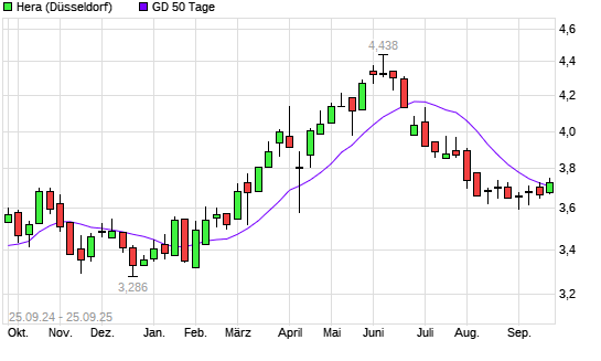 Mit dem Anstieg auf 3,69 EUR hat die Hera-Aktie am 24.09.2025 die 50-Tage-Linie nach oben gekreuzt.Die Hera-Aktie befindet sich seit dem 05.08.2025 im langfristigen Abwärtstrend und hat in diesem ...weiterlesen