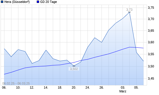 Mit dem Rücksetzer auf 3,52 EUR hat die Hera-Aktie am 05.03.2025 die 20-Tage-Linie nach unten gekreuzt.Die Hera-Aktie befindet sich seit dem 27.01.2025 im langfristigen Aufwärtstrend und ...weiterlesen
