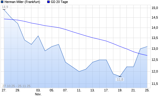 Mit dem Anstieg auf 13,00 EUR hat die Herman Miller-Aktie am 24.11.2025 die 20-Tage-Linie nach oben gekreuzt.